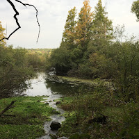 another -- through photos or words or more hikes with dogs through the woods -- to bottle and preserve as the best of the best like a fine vintage. Lush foliage, which used to interrupt the sight of the smoldering yellow bulb in the sky are now clear and it is the craggy black spines of the marsh oaks that seem more like swift dashes off the sharp end of a charcoal pencil than limbs. As the sounds of the nearby highway dim, the visitors rush in for the season, learn again to admire now that the mosquitos have retired, and will gladly tell you of the stories of the favorite paths.
